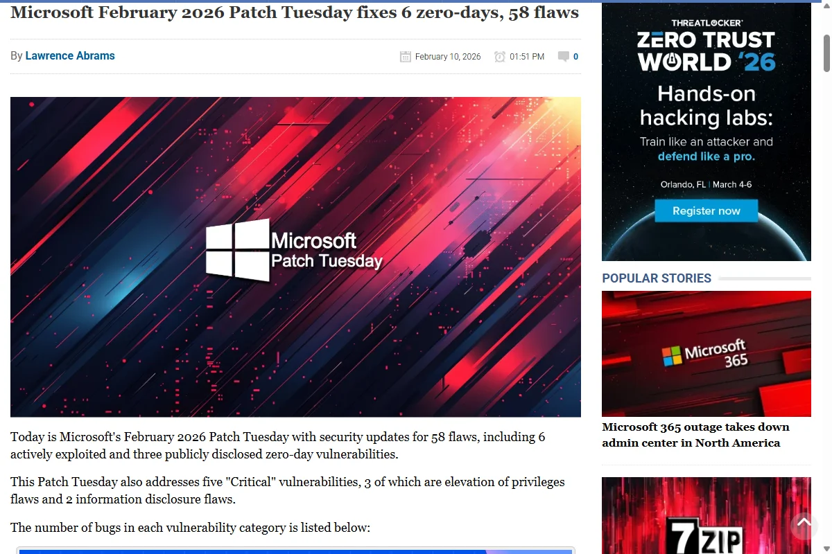 Jason's got nothing on Microsoft's February Patch Tuesday. While the horror franchise scares with a hockey mask, Redmond delivered real terror on February 11 with six actively exploited zero-days — released just in time for Friday the 13th. The patch bundle addressed 54 CVEs total, but these six were already hunting victims in the wild.